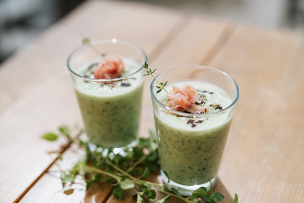 Hideg uborkaleves, sonkával és tökmagolajjal